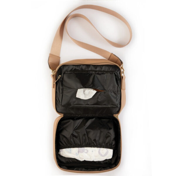 Material: eco cuero. Impermeable en su interior. Doble compartimento,el N°1 tiene 3 bolsillos divisorios. Compartimento N°2 tiene 1 bolsillo + 1 para toallitas húmedas con cierre. Cambiador. MEDIDAS: 25cm largo x 18cm alto x 12cm profundidad.