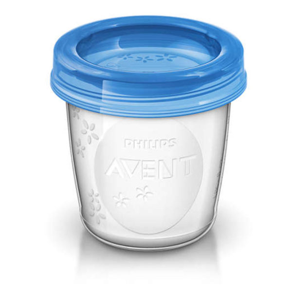 Los vasos de almacenamiento Philips Avent tienen una tapa que crea un sello firme para trasladarlos y guardarlos de forma segura.