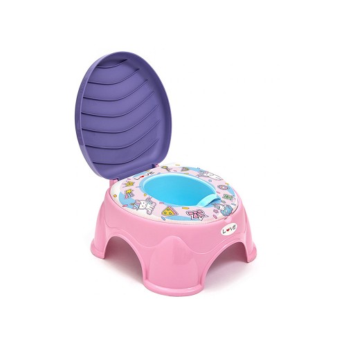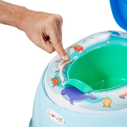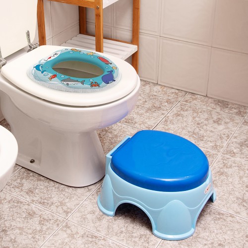 • Pelela 3 en 1: 1) Pelela. 2) Reductor de inodoro ACOLCHONADO. 3) Escalón o banquito. • Con tapa y bacinilla desmontable para fácil lavado.